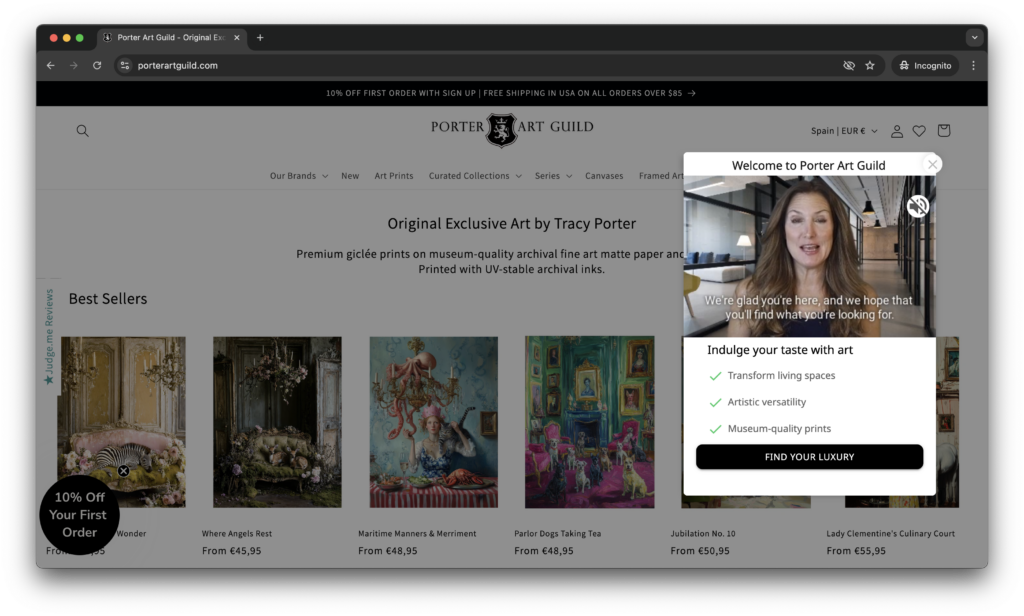 • Awareness-stage visitors: Visitors discovering Porter Art Guild for the first time received warm, brand-introducing microvideos that set expectations and explained the artistic world behind each collection. This replaced confusion with clarity from the very first impression.
