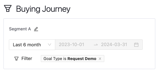 Select the Buying Journey report, specify the time period you want to analyze, and apply a filter based on the goal to better understand the related touchpoints.