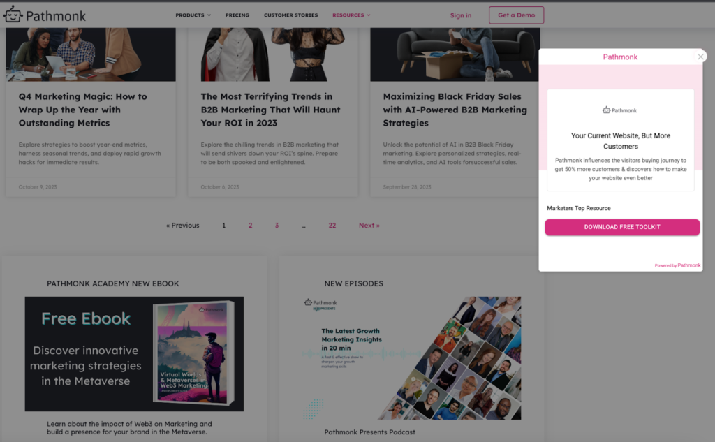 To achieve this, forward-thinking marketers are turning to Pathmonk Accelerate, an AI-powered conversion rate optimization tool that can significantly enhance your lead-generation efforts. By leveraging the power of Pathmonk Accelerate, you can provide personalized experiences on your blog to your users based on their real-time intent and behavior.